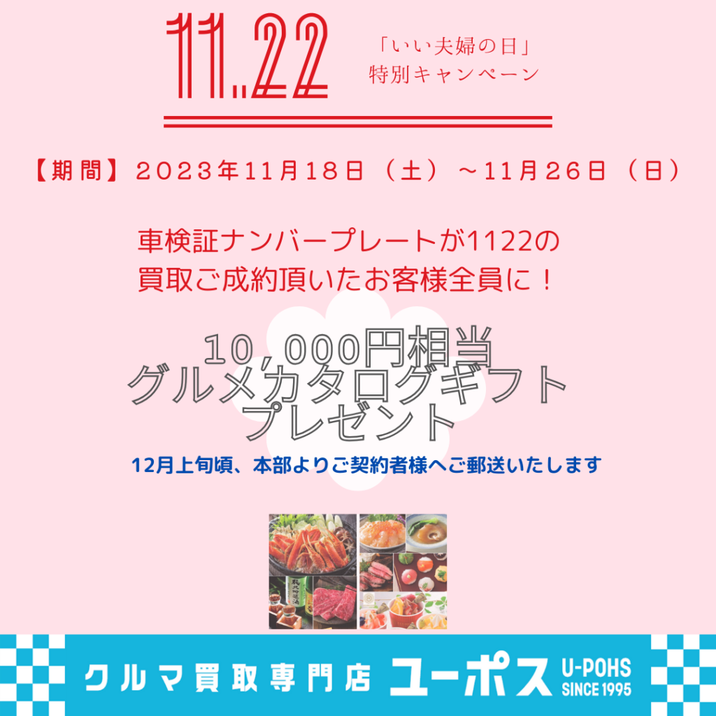 ナンバープレートが【1122】のお車をご売却いただいた方に、