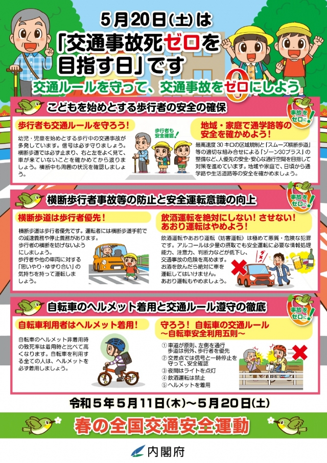 交通安全運動は5月11日からの実施ですが、GWも外出や車に乗っての移動が増えるので