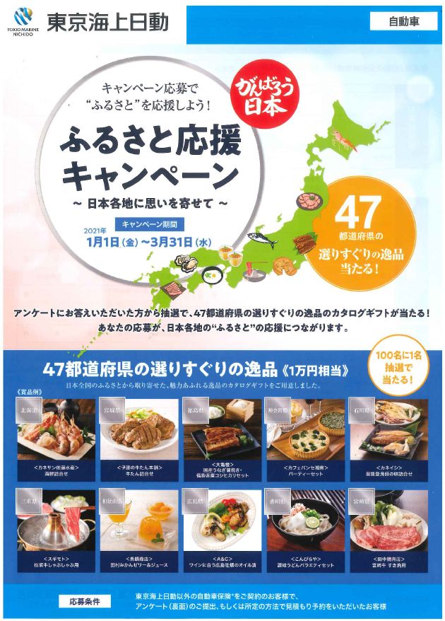 車(中古車)の買取・売却・査定ならユーポス HOME 店舗を探す 奈良県の店舗一覧 ユーポス生駒店 店舗ブログ ふるさと応援キャンペーン📣 ふるさと応援キャンペーン📣 こんにちは☀ ユーポス生駒店です🚙 現在東京海上日動さんで 『ふるさと応援キャンペーン』 を開催中です 東京海上日動以外の保険ご契約の方で お見積りを取らせていただいた方にお配りいたします🚘 47都道府県の選りすぐりの逸品が抽選で当たります🎯 保険の見直しついでに是非おいしいものを当ててください 保険の見直しだけのご来店も大歓迎 お気軽にご来店ください 全国対応!ユーポス無料相談受付 メーカー メーカーを選択 車種 車種を選択 年式 年式を選択 お名前(カナ) 電話番号 郵便番号 - 都道府県