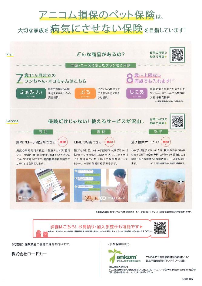 当店でアニコムペット保険に加入していただいた方全員に