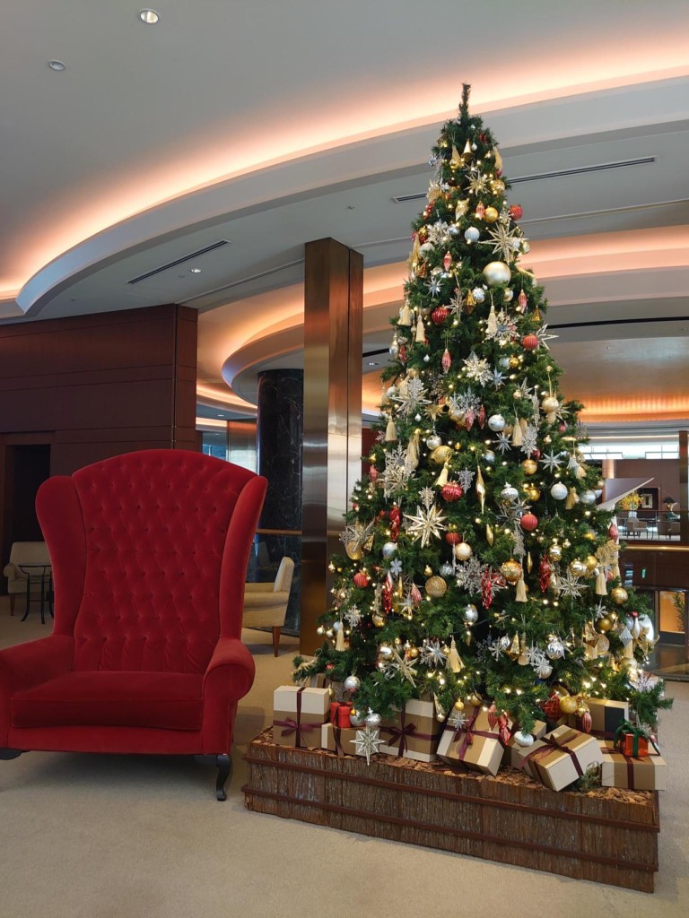 ホテルのロビーには大きなクリスマスツリーが🎄