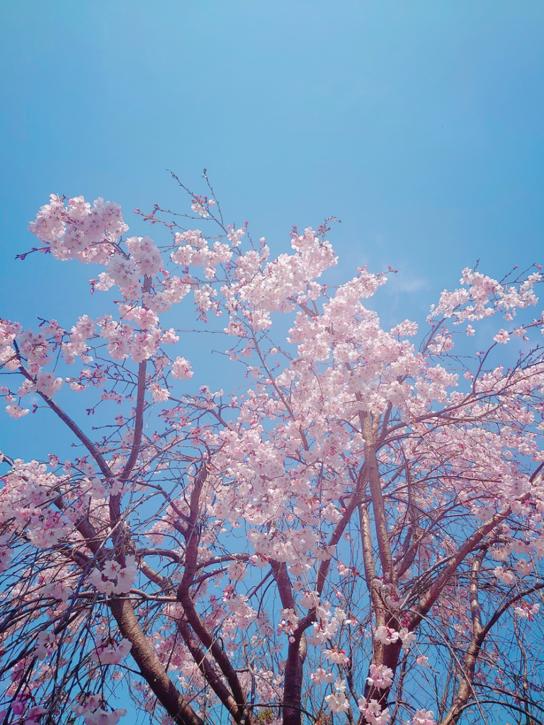 青空に桜のピンク色が映えて綺麗です
