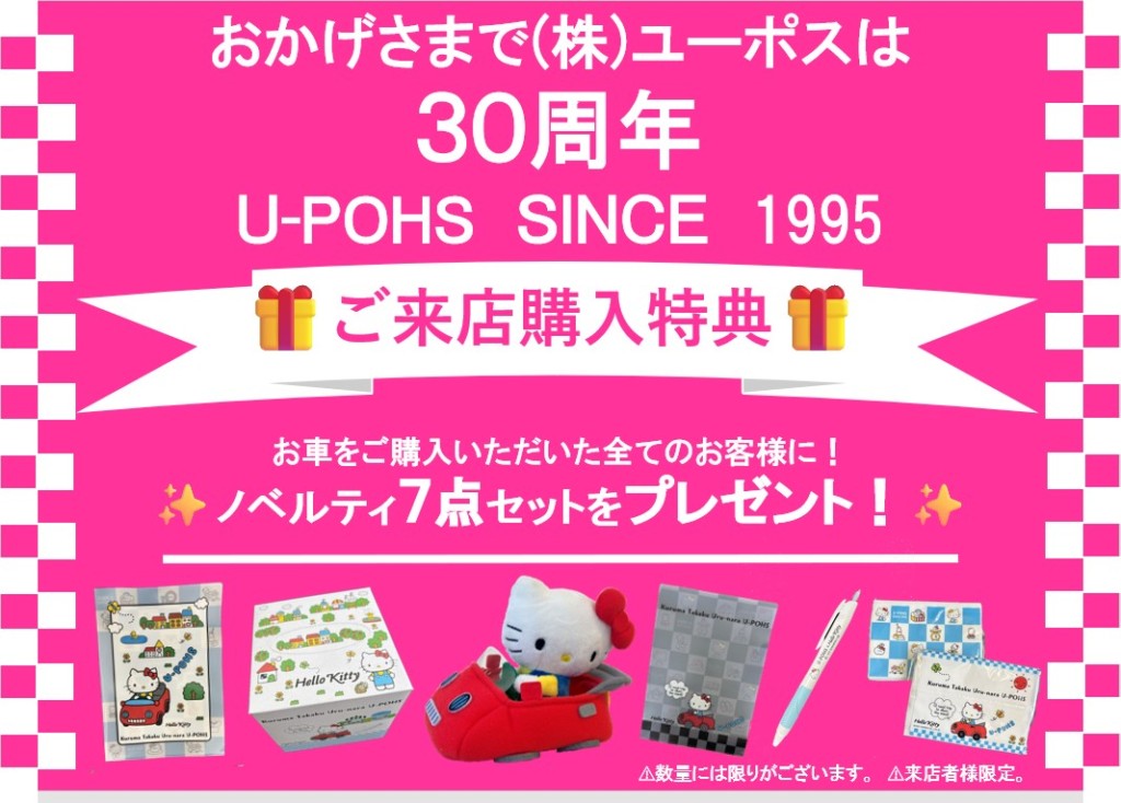 車(中古車)の買取・売却・査定ならユーポス HOME 店舗を探す 大阪府の店舗一覧 ユーポス外環河内長野店 店舗ブログ 【来店成約キャンペーン】 【来店成約キャンペーン】 🎉ユーポス30周年記念🎉 🚗【来店限定 プレゼントキャンペーン】🚗 日頃の感謝を込めて✨ ご来店にてご成約いただいたお客様へ、 大人気の《ユーポス限定ノベルティ7点セット》をプレゼント🎁 今年最後のお得なチャンスです!! 数量限定・先着順となりますので、ぜひお早めにご来店ください✨ 年末のおクルマ探しはユーポスへ🚗💨 スタッフ一同、皆さまのご来店を心よりお待ちしております😊 #ユーポス外環河内長野店 #高価買取 #車購入 #大阪中古車 #車査定 全国対応!ユーポス無料相談受付 メーカー メーカーを選択 車種 車種を選択 年式 年式を選択 お名前(カナ) 電話番号 郵便番号 - 都道府県