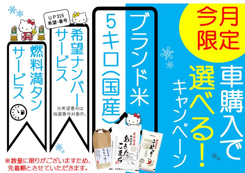 1月にお車をご購入いただいたお客様へ、 うれしい特典を3つの中からお好きに選べます👇