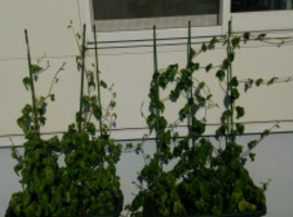 こんなにツルは伸びるのに、花が咲くどころかつぼみも見当たりません ・ もう8月も半ばまで来たというのに・・・ ・ ここまで育って咲かないと言うのは悲しすぎるので、 ・ これは遅咲きの品種なんだ。と思い込むことでなんとか平常心を保っています