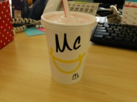 営業のKさんからいただきました いちご味?のシェイクです ・ 久しぶりに飲むとおいしいですね~ ・ 特に最近暑いので・・・冷たくて甘いもののおいしいこと・・・ ・ 本当に暑くなってきましたので、皆さまも水分補給は忘れずこまめにしてくださいね