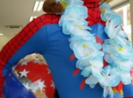 スパイダーマンの肩の上に、なぜかネズミが乗っています ・ 季節感とかそういうのは無視でしっかり乗ってます。 ・ もちろんおもちゃです ・ ちょっとかわいいのでしばらくそのままです
