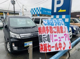 いつもブログをご覧いただきありがとうございます。 皆さんにもっと車を見てもらいやすように展示場をリニューアルしました 2日連続の雨で写真がパッとしないですが・・・ 今流行の鬼滅の刃もお待ちしています コロナでなかなか出れないと思いますが ユーポス久御山店はコロナの対策で換気・マスク・消毒と徹底していますので