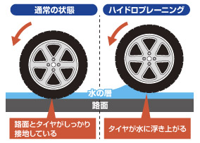 こんにちは ユーポス堺泉北店です 運転中に操作不能になったら凄く怖いですよね そんな為に、車のこういった現象をお伝えします ・ハイドロプレーニング現象 免許をもっている人なら1度は聞いたことがあると思いますが 濡れた路面を高速走行するとタイヤと路面との間に水幕ができることによって浮いた状態になります そうなると、ハンドルやブレーキがコントロール不能になる現象になります もし