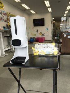 こんにちはユーポス外環東大阪店です 入口に設置しておりますアルコール消毒のご案内です 以前は手動のポンプ式でしたが、本日より自動式となりました 体温も一緒に確認できますので、 ご来店の際はアルコール消毒と体温計測にご協力宜しくお願い致します