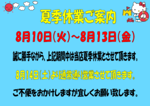 こんにちはユーポス外環東大阪店です 毎日暑いですね 夜も暑すぎて寝苦しく、寝ている途中で目が覚めてしまいます 目を覚まして寝る前に読んでいた本を読んでまた眠くなって寝るの繰り返しです いけないとは思うんですが、やっちゃうんですよね 早く涼しくなって欲しいです 8月パーテーションPOPのご案内です 今回内容が大事すぎてなかなか抜粋できませんで