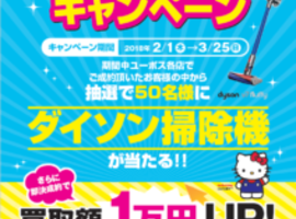 こんにちはユーポス外環東大阪店です またまた寒い日が続くようです インフルエンザも流行しているので、しっかり寒さ対策&風邪予防しないとですね 2/1(木)からキャンペーンが始まりました なんと期間中にご成約頂きましたお客様の中から抽選で50名様にダイソンが当たります ダイソンいいですね 家庭で役に立つこと間違いなしです お車の売却を考えてるお客様今