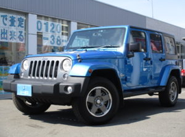こんにちはユーポス東大阪店です 今日は少し暖かいですね~春らしいですね~ でも夜はまだまだ寒いので油断は禁物ですね あと花粉にも 今日も非常に多いそうです 今日は珍しい車輌の方紹介させて頂きます ラングラーアンリミテッド グレード:フリーダムエディション 距離:20,198km 色:青色 初度登録:平成26年9月 右
