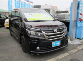 こんにちは東大阪店です 今日は春らしい気温で暖かいですね こんなに暖かいと桜が早咲きしてしまうかもしれませんね 本日おすすめ車輌を紹介させて頂きます ヴォクシーハイブリッドです 年式:26年10月 色:黒 距離:48,304Km グレード:ハイブリッドX モデリスタエアロ 両側パワースライドドア 女性ワンオーナー