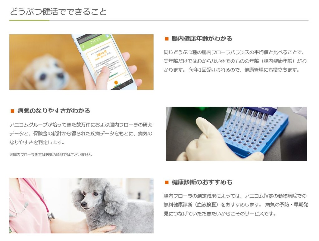こんにちは ユーポス外環八尾店です 当店は、アニコム損保さんの動物保険も取り扱っています たくさんのペット保険がありますが アニコムさんは予防型ペット保険なのです 具体的に何かというと 人間でも話題の「腸内フローラ」測定が、なんと毎年受けられます 腸内フローラ測定の結果から、病気のなりやすさを判定します さらに測定結果に応じて、無料で