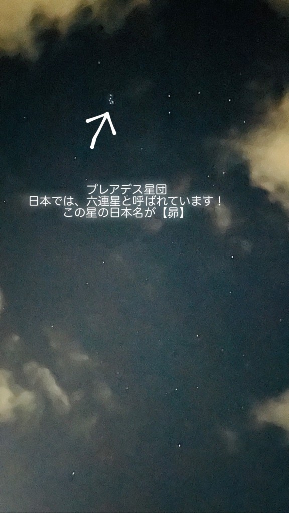 こんにちは ユーポス外環八尾店です 昨夜から急激に冷え込みましたね 私は山奥に暮らしているのですが 電灯などが無いお陰でお星さまが綺麗に観ることができました iPhoneで撮れるぐらい綺麗に光っていました この六個の星の由来は元々おうし座の『プレアデス星団』といい 日本ではプレアデス星団は昔から『六連星』と呼ばれていたそうです