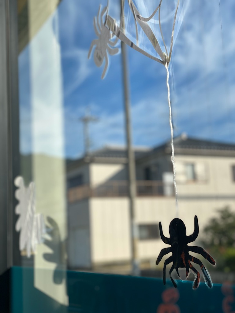 こんにちは ユーポス外環八尾店です 明日はハロウィーンですね 明日は感染対策をして楽しみたいですね 当店では今月ハロウィーン装飾をしています 装飾の蜘蛛まみれですが、ぜひお立ち寄りください この蜘蛛の装飾の糸はビニール紐で再現しているので 風で揺れる仕組みとなっています 皆様のご来店楽しみにおまちしてお