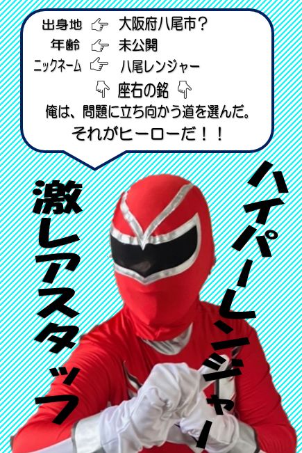 こんにちは ユーポス外環八尾店です ユーポス外環八尾店の激レアスタッフをご紹介します その名も、ハイパーレンジャー 謎ばかりの、激レアスタッフです 会えたら、スーパーラッキーです なぜなら、レンジャーにお車の相談が出来るからです レンジャーを見かけたら是非指名してみて下さい 皆さまのご来店楽しみにお待ちしております