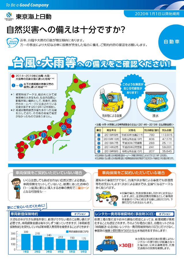 こんにちは ユーポス外環八尾店です 最近豪雨が多く、雷も多く発生しています 近年、自然災害は多くなっていますね 自然が起こすものなので、対策は難しいですが財物に対しては 車両保険が皆様のお守りになるかと思います 車両保険に加入しているだけで、台風や洪水による事故を補償してくれます また加入していない方は、この機会に追加するだけで加入できますので