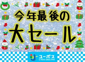 こんにちは ユーポス外環八尾店です さてクリスマスのお話もしたい気持ちを抑え 年末年始、休業のお知らせです 12月28日~1月3日 までお休みを頂きます。 12月27日通常営業10時から20時まで営業しております。 年始1月4日も通常営業し新春セールも開催致しますので 是非ご利用下さい 今年も残すところ9日