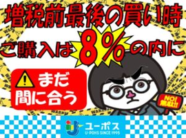 こんにちは ユーポス外環八尾店です さて、増税が目前にして軽減税率や10%、8% とわかりにくくなっております 車も同じで、名義変更の登録日で異なります 現段階で、10%の可能性が高くなっています まずはお電話頂ければ、お客様にあった情報を お伝えさせていただきます まずはお問合せ下さい